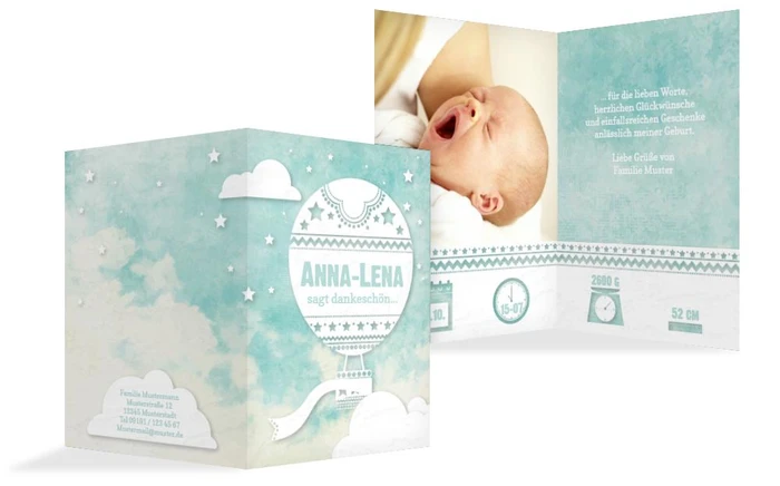 Dankeskarte zur Geburt Ballonfahrt