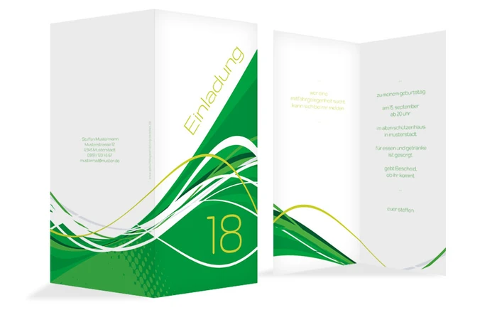 Machen Sie eine große Welle zu Ihrem runden Geburtstag mit der Einladungskarte Welle 18. Elegantes und modernes Design, das sich im Inneren fortsetzt und Ihren persönlichen Text wunderbar zur Geltung bringt.