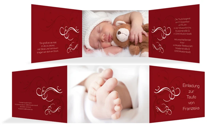 Einladungskarte Taufe Schnoerkel