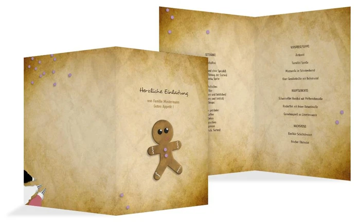 Ein leckeres Lebkuchenmännchen verziert mit Zuckerguss und Minzdrops, serviert auf Backpapier.