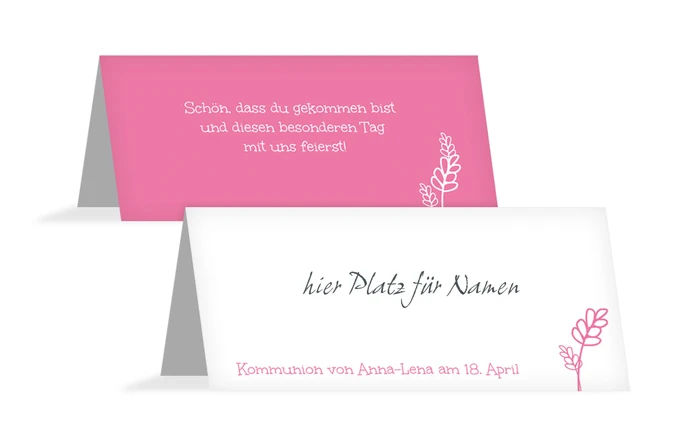 Mit der erfrischend wirkenden Tischkarte zur Kommunion „Gräser“ erhalten Sie eine ansprechende Tischkarte mit farblich abgesetzten Gräsern, die nicht nur Vegetarier ansprechen wird.