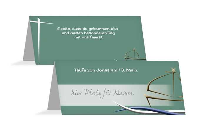 Sanft geschaukelt wie das Schiffchen auf Wellen. Da passt die Tischkarte Schiffchen auf Wellen einfach perfekt. Das Schiff wird von den Wellen sanft geschaukelt und wird nicht nur Ihren Täufling begeistern.