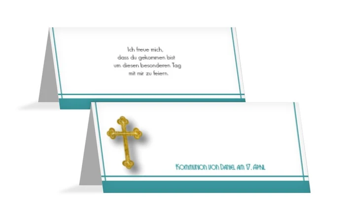 Nehmen Sie einen Teil der Kirche mit an Ihre festlich eingedeckte Tafel. Mit der Tischkarte zur Kommunion „Gebetbuch“ gelingt Ihnen genau das. So geleiten Sie Ihre Gäste stilsicher an den richtigen Sitzplatz Ihrer hübsch geschmückten Tafel.