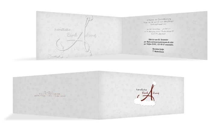 Die A_Mütze macht aus dieser originellen Einladungskarte zur geschäftlichen Weihnachtsfeier einen ganz besonderen Hingucker. Begeistern Sie Ihre Kunden mit dieser Einladungskarte. Nutzen Sie den Innenteil für Ihren Text.