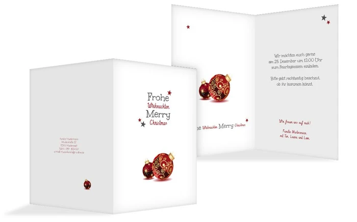 Weihnachts Einladungskarte privat Weihnachtskugeln