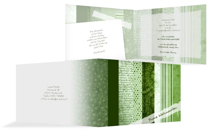 Geschenkpapier erinnert an Weihnachten, Bescherung und besinnliche Stunden. Vermitteln Sie dies Ihren Kunden mit der Weihnachtsgrußkarte im geschäftlichen Design. Fügen Sie im Innenteil noch Ihren persönlichen Text hinzu.
