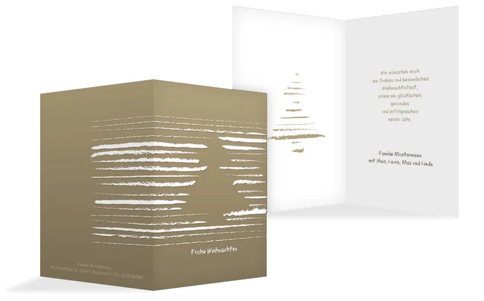 Eine moderne Kreidentanne ziert diese Weihnachtsgrußkarte für Ihre privaten Weihnachtswünsche. Fügen Sie der Textkarte im Innenteil noch Ihren persönlichen besinnlichen Text zur Weihnachtszeit hinzu.